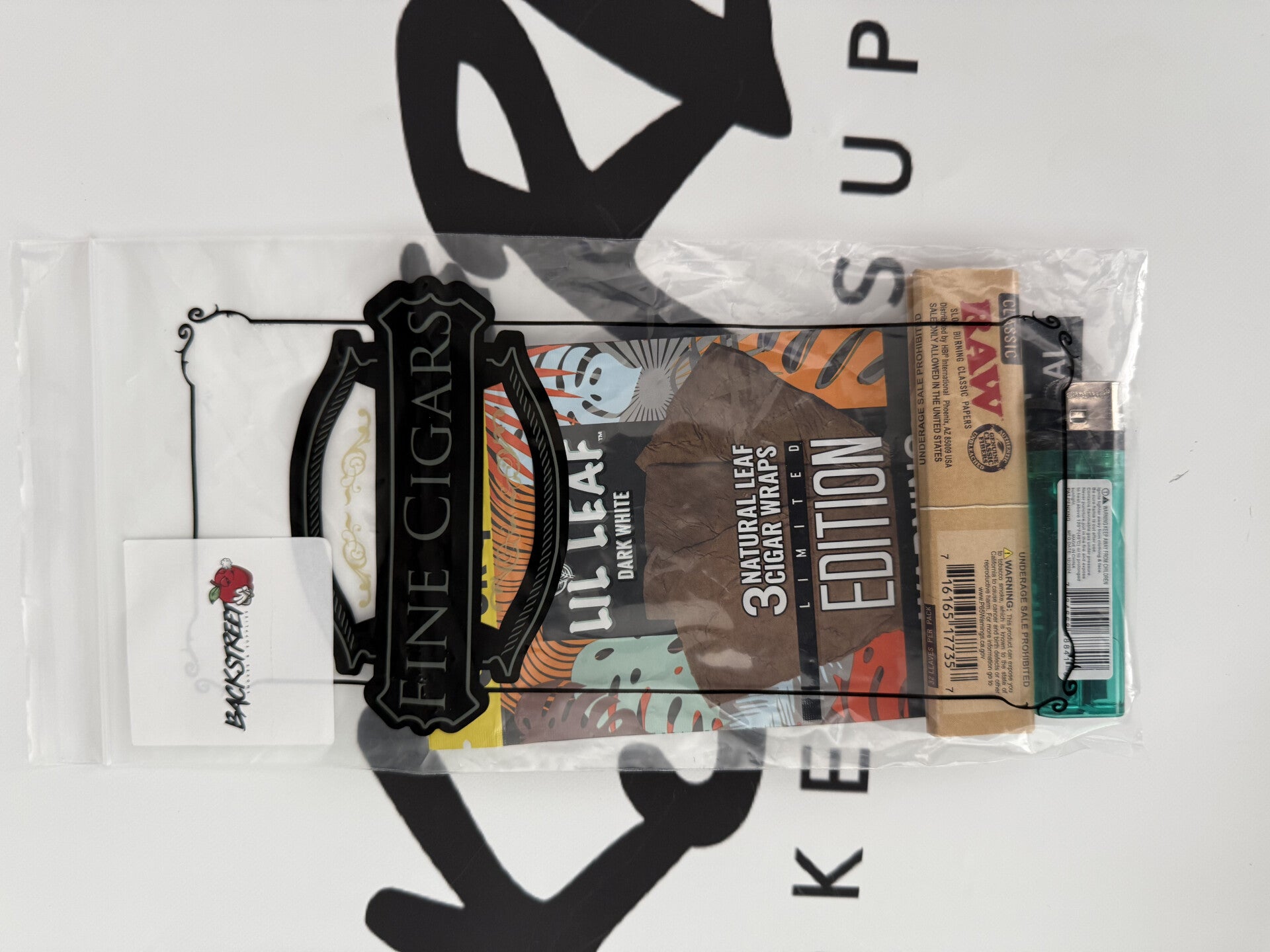 2 packs of lil leafs, 2 packs of bob marley rolling papers, and 1 lighter